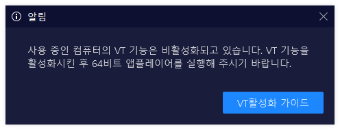 먼저 Nox를 설치해주어야 하는데, 이걸 설치하고 실행하려니까 다음과 같은 창이 뜨면서 실행이 되지 않았다.
