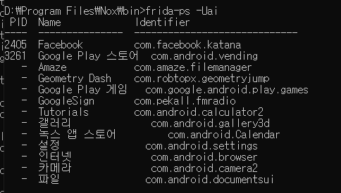 frida-ps -Uai