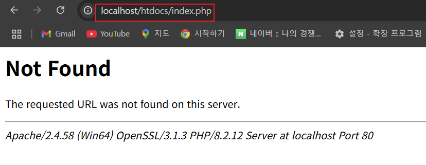 이 문제를 해결하려면 간단하게 url에서 htdocs 경로를 빼주시면 됩니다.