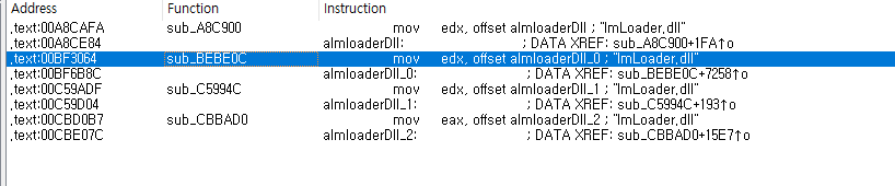 그 다음, IDA에서 ImLoader.dll이 언제 로드되는지를 확인해보았습니다.