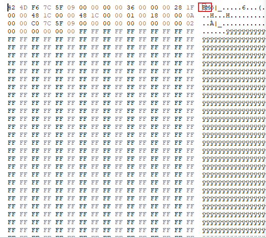 19778을 16진수로 변환시켜서 텍스트로 나타내면 MB인데, dib 파일을 열어서 확인해보면 앞에 BM이라는 글자가 있습니다.