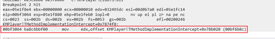 0xbf3064 주소에 브레이크 포인트가 걸리는 것을 확인했습니다.