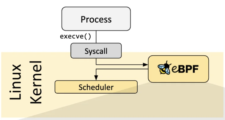 대충 이런 식으로 Process가 실행될 때 특정 syscall이 발생하면 eBPF 프로그램이 실행된다고 생각하면 됩니다.